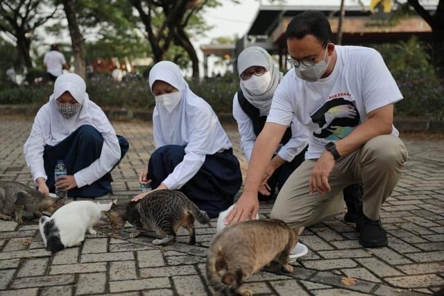 Moment Anies Baswedan Beri Makan Kucing Liar di Hari Rabies Sedunia