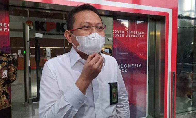 Datang ke Gedung KPK, Kadinkes Lampung Tutupi Wajah Pakai Majalah